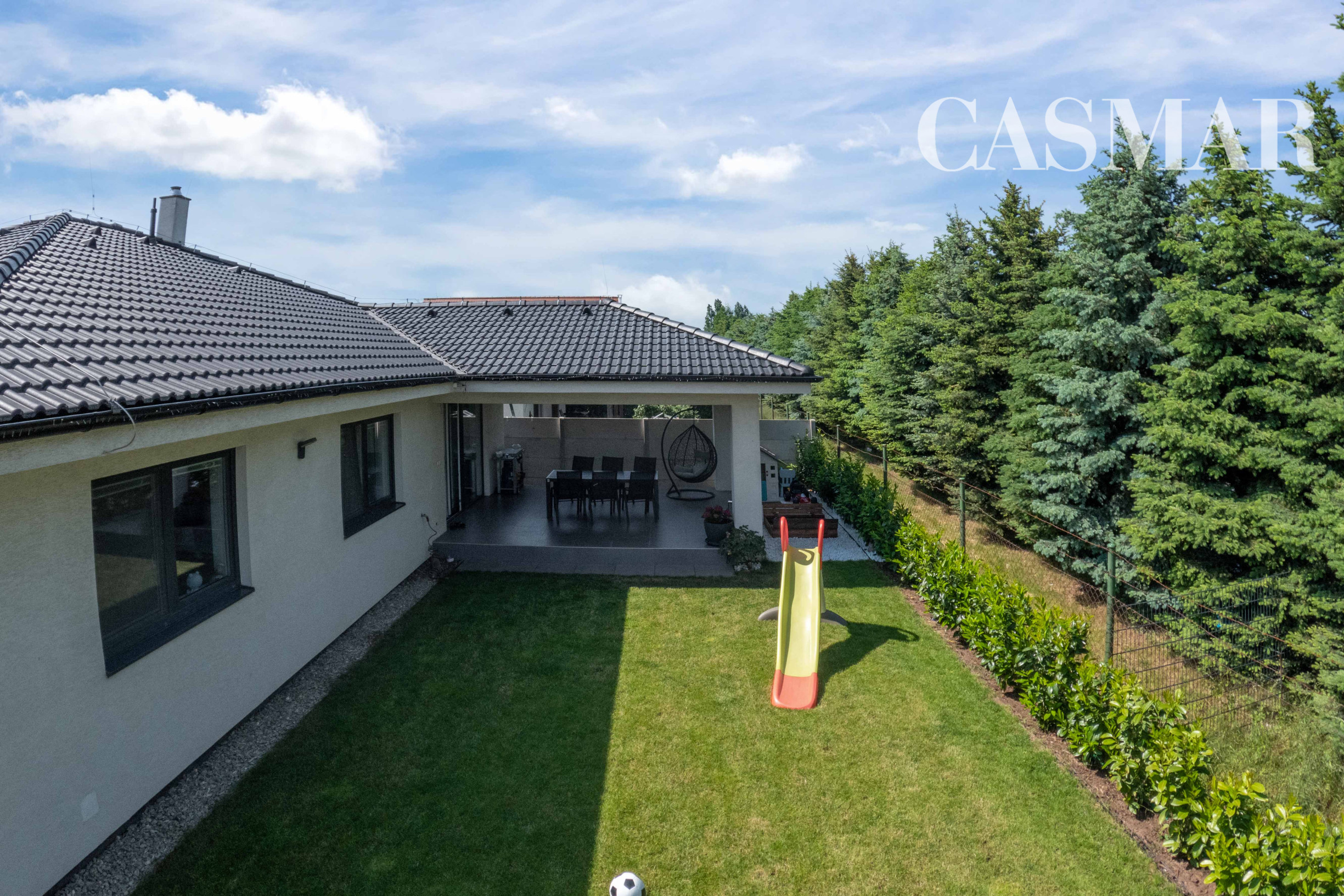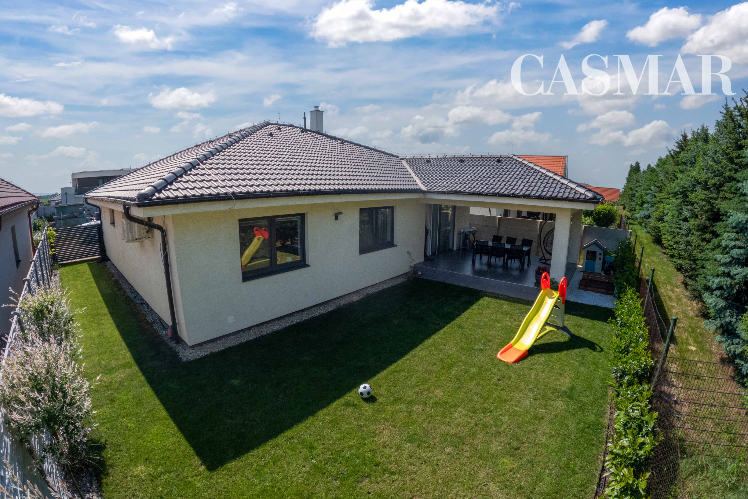 Dom, ktorý má len 5 rokov, je situovaný na rovinatom a kompletne oplotenom pozemku so všetkými inžinierskymi sieťami – voda, elektrina, kanalizácia, plyn, závlaha. Ideálna voľba pre rodinu s deťmi v príjemnej novovybudovanej lokalite.