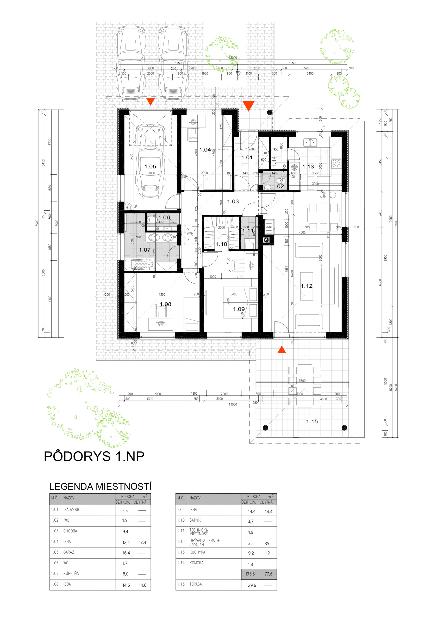 Dom je rozdelený na dennú a nočnú časť.