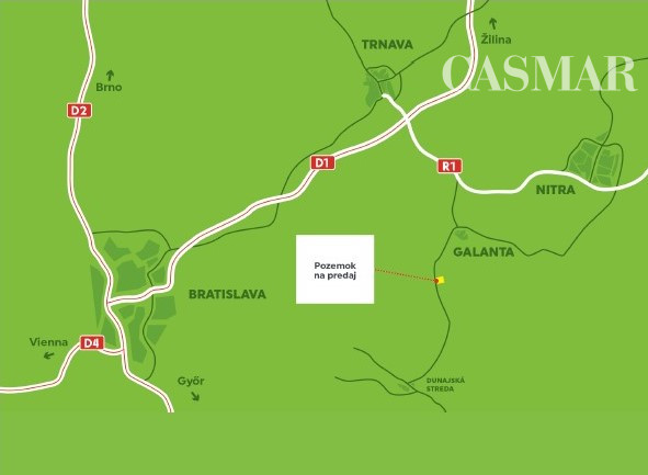 CASMAR REALITY ponúka na predaj pozemok vhodný na výstavbu priemyselného objektu/logistického skladu v lokalite Mostová (okres Galanta) s napojením na rýchlostnú cestu R1 a diaľnicu D1.