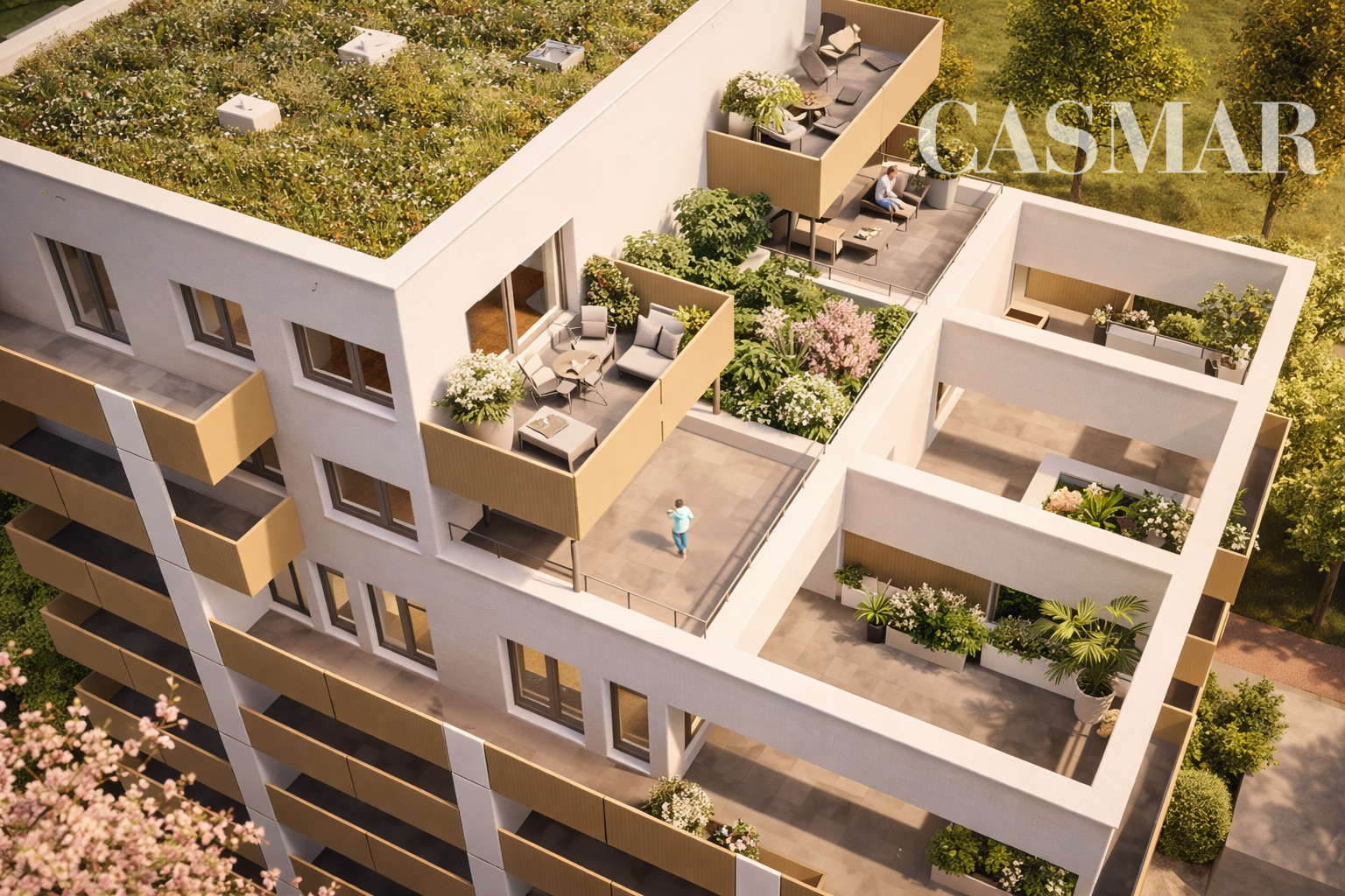 Byt sa nachádza na 7. a 8. poschodí, vďaka čomu poskytuje maximálne súkromie, pokoj a dostatok prirodzeného svetla počas celého dňa.