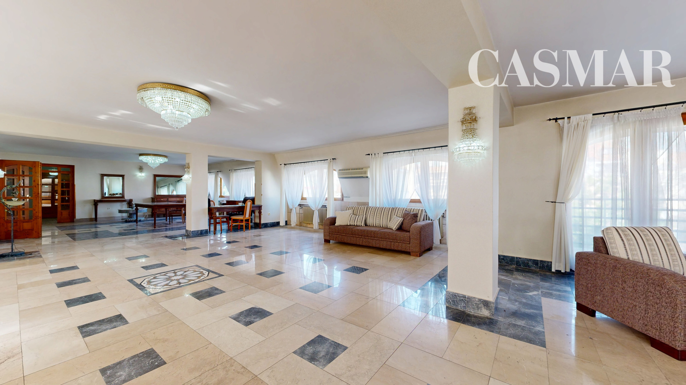 • veľkorysá obývacia miestnosť rozdelená do viacerých zón