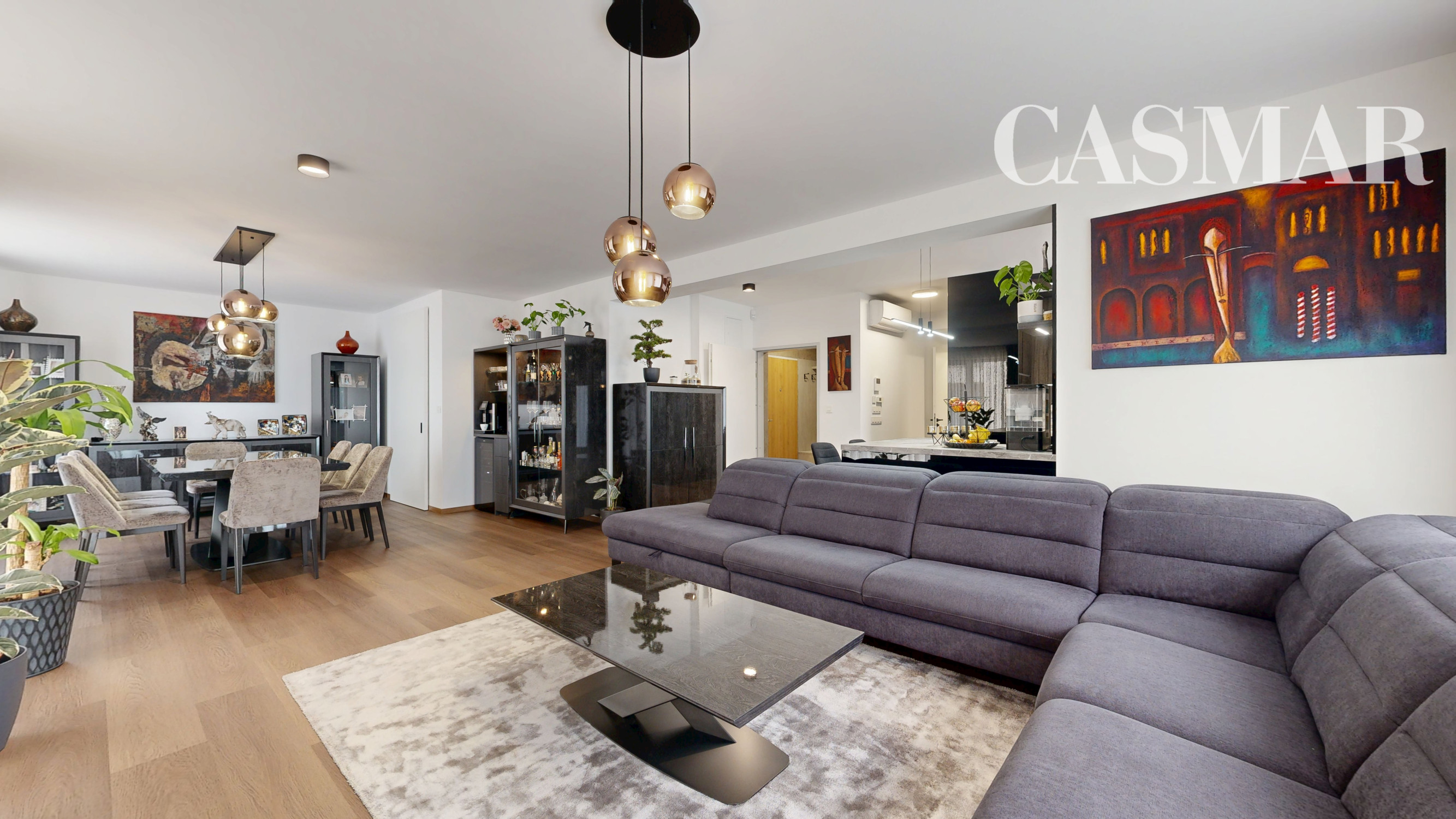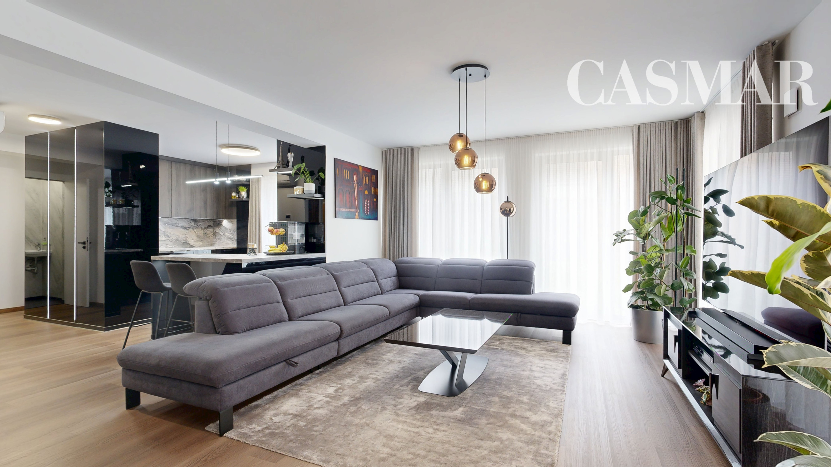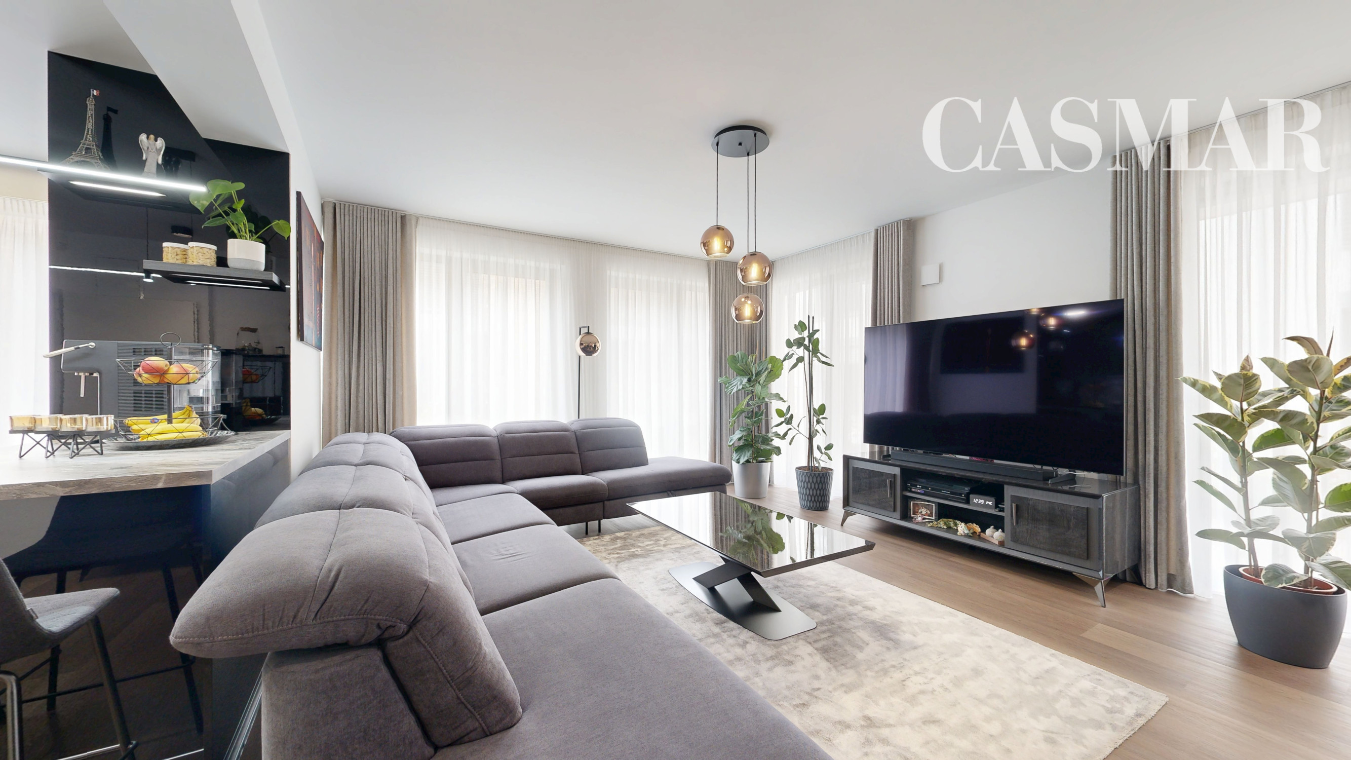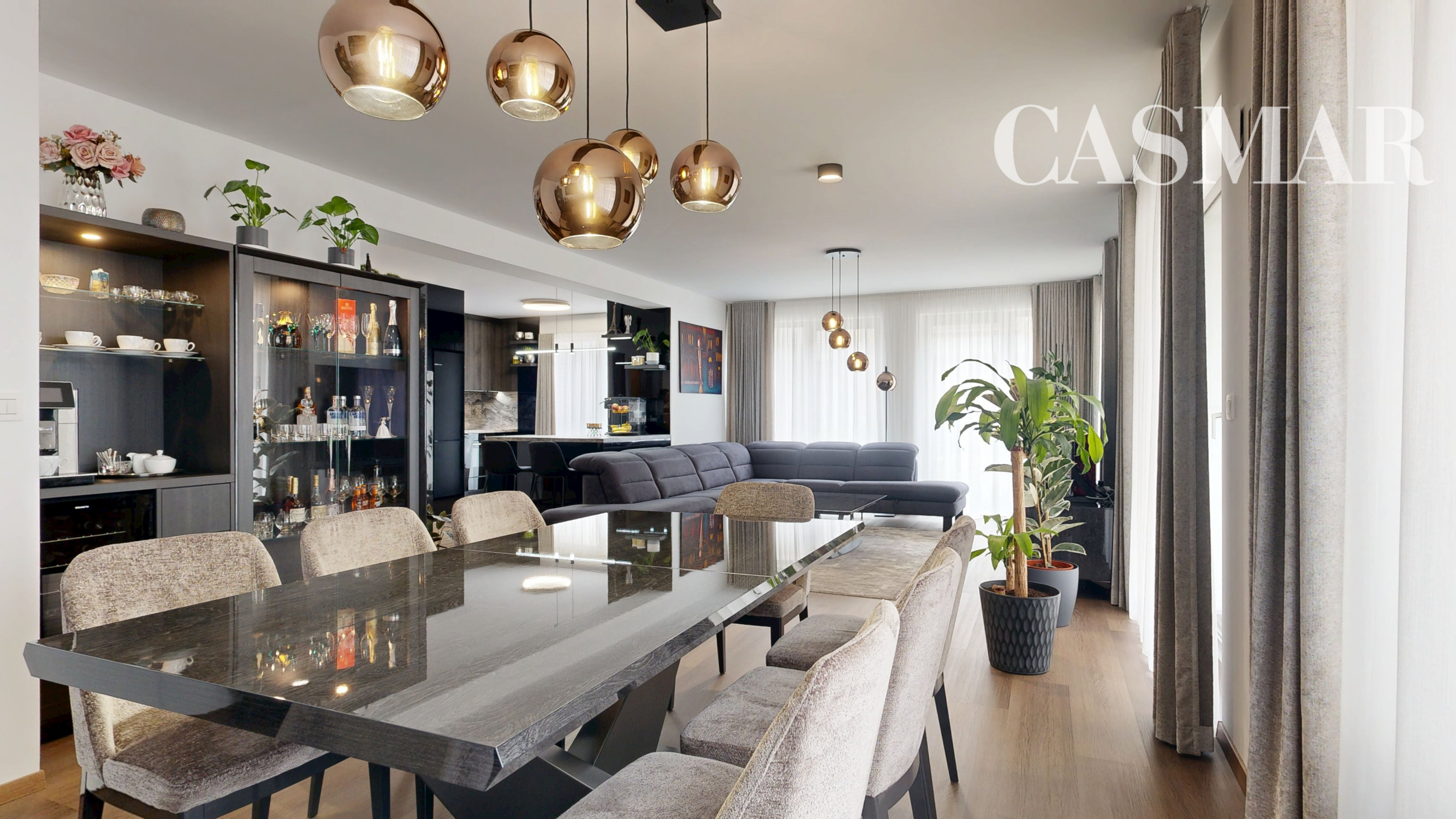 Byt vznikol spojením 3-izbového a 2-izbového bytu, vďaka čomu ponúka mimoriadne veľkorysú výmeru, nadštandardný komfort a premyslené dispozičné riešenie rozdelené na dennú a nočnú časť.